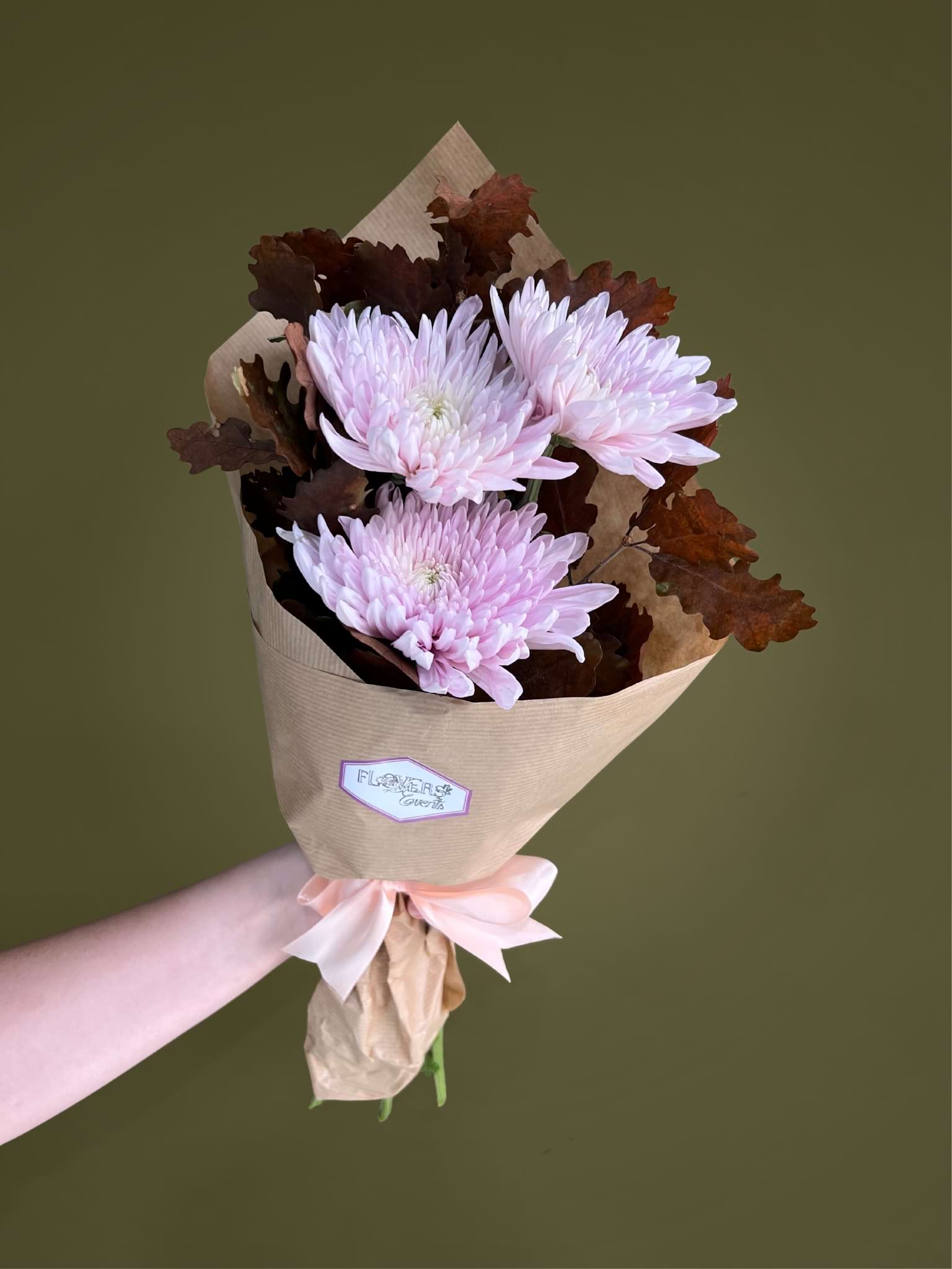 Acest produs contine: 3 crizanteme, quercus, ambalaj si panglica