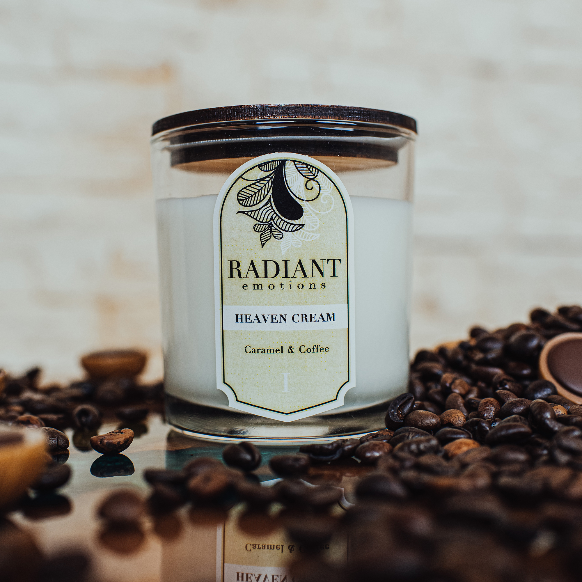 Inchide ochii si imagineaza-ti mirosul unei cafele proaspete, cu topping de caramel. Mmm… ce arome delicioase! Acum deschide ochii si priveste in fata ta: acel buchet de mirosuri intr-o lumanare eleganta, gata preparata, oricand ai nevoie! Incearca acum Heaven Cream – Caramel & Coffee by Radiant Emotions, precum si celelalte lumanari parfumate din colectiile de pe www.radiantemotions.ro