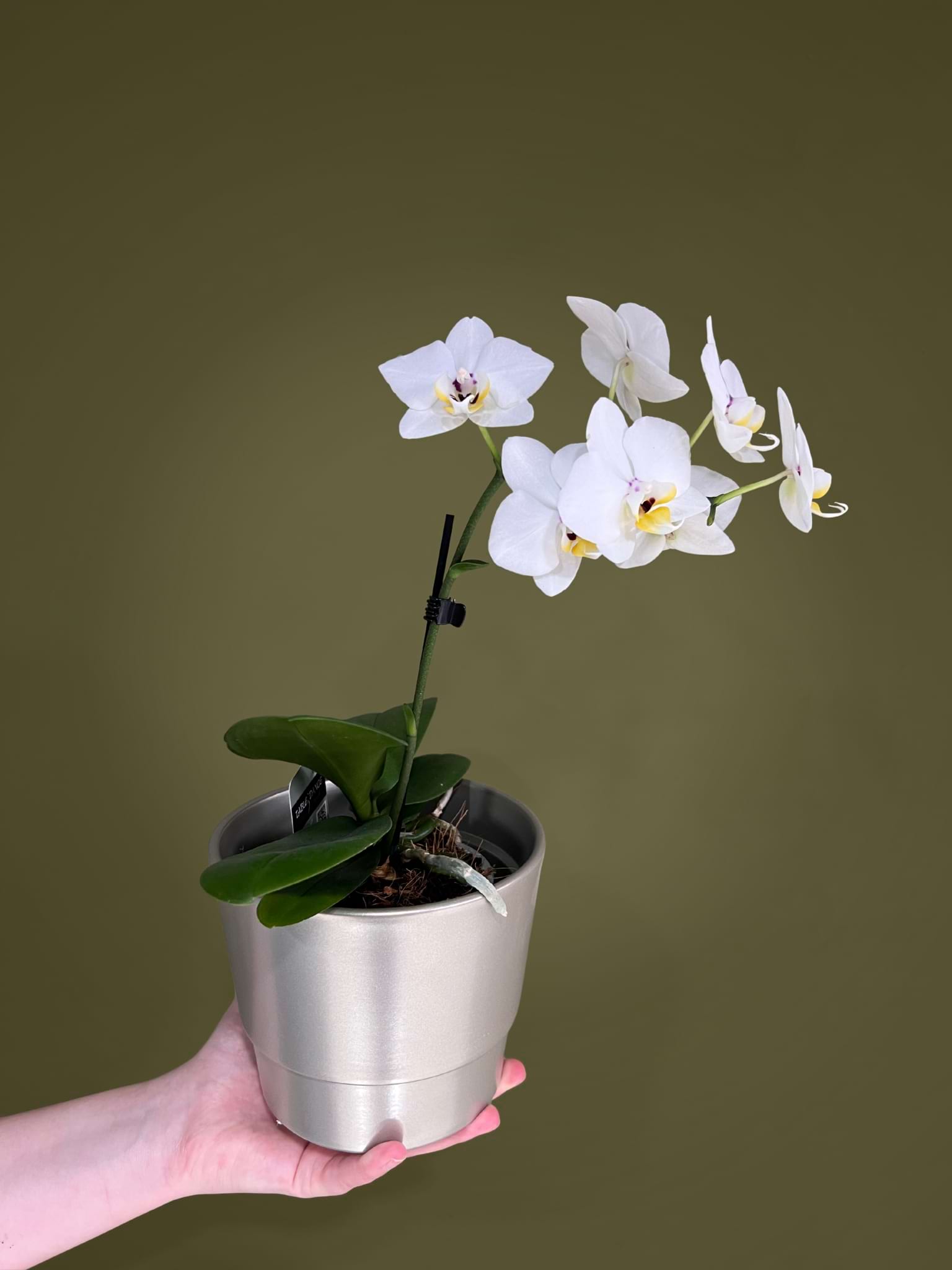 Acest produs contine: orhidee la ghiveci inaltime 25-30 cm, ghiveci de ceramica.